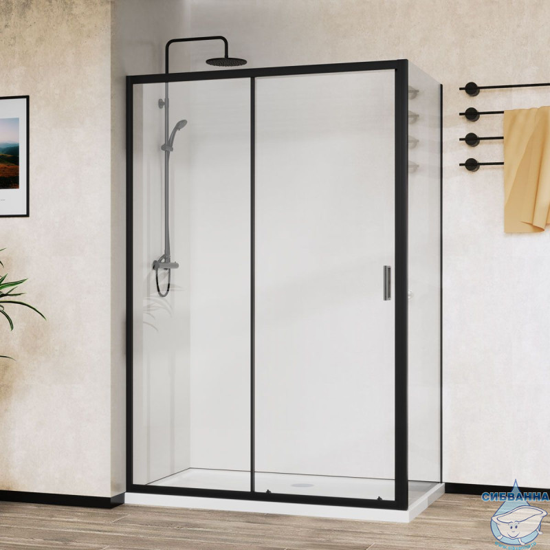 Душевое ограждение Vincea City 120x90 профиль черный, стекло прозрачное VSR-5CT9012CLB