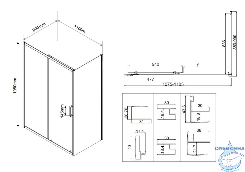 Серия: City Форма: прямоугольная Материал: алюминий Высота, мм: 1950 Толщина стекла: 5мм Тип стекла: прозрачное Кол-во дверей: 1 Конструкция открывания дверей: раздвижная Двойные верхние и одинарные нижние ролики Ручка из АБС-пластика
