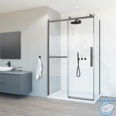 Душевое ограждение Vincea Como Soft 110x100 профиль вороненая сталь, стекло прозрачное VSR-1CS1011CLGM