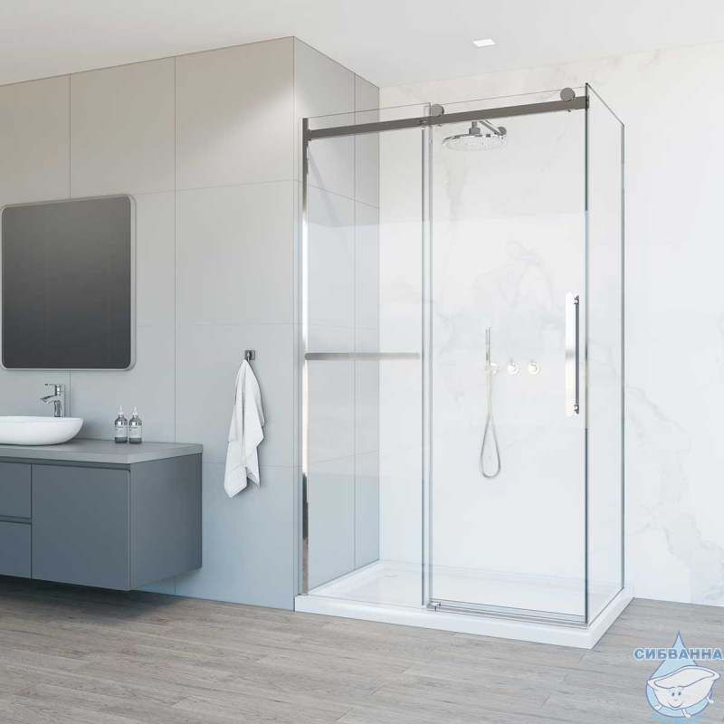 Доводчики обеспечивают плавное закрывание двери. Напольный монтаж / монтаж на поддон / монтаж пристенный в угол. Поддон приобретается отдельно. Двери с прозрачным полотном. Раздвижная система дверей. Алюминиевый профиль. Хромированный профиль. Глянцевая поверхность профиля. Ширина регулируется на несколько сантиметров. Фурнитура с механизмом доводчика. Имеет покрытие «антикапля», упрощающее уход за изделием. Оснащение: оснащен полотенцедержателем.