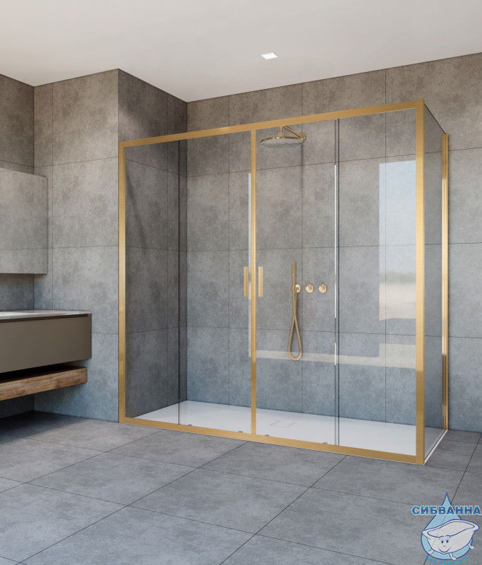 Душевое ограждение Vincea Garda 170x90 профиль брашированное золото, стекло прозрачное VSR-1G29017CLG