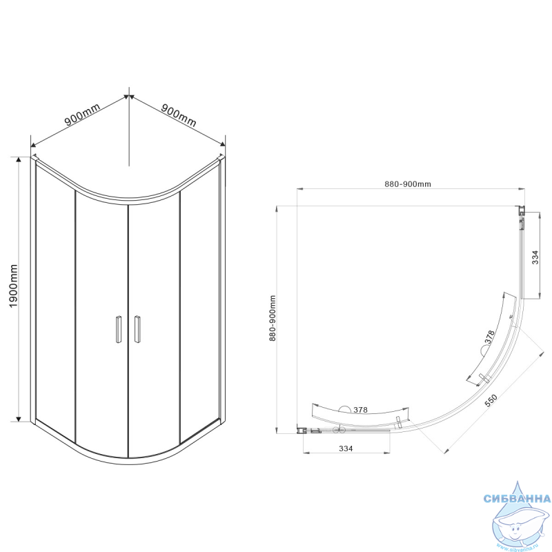 Серия: Garda. Форма: четверть круга. Материал: алюминий. Высота, мм: 1900. Толщина стекла: 6мм. Тип стекла: прозрачное. Кол-во дверей: 2. Конструкция открывания дверей: раздвижная.