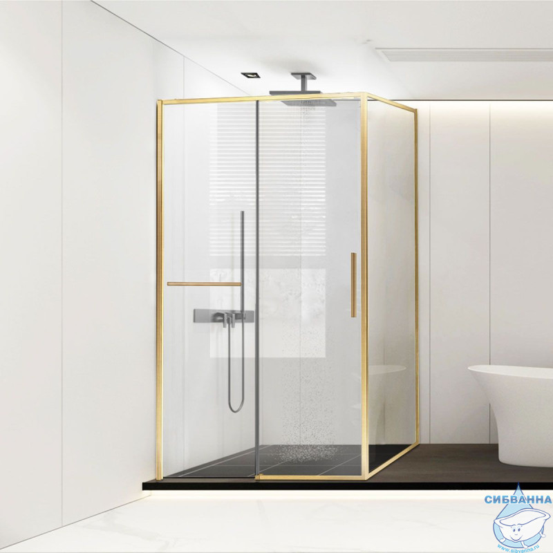Душевое ограждение Vincea Slim Soft 130x90 профиль брашированное золото, стекло прозрачное VSR-1SS9013CLG