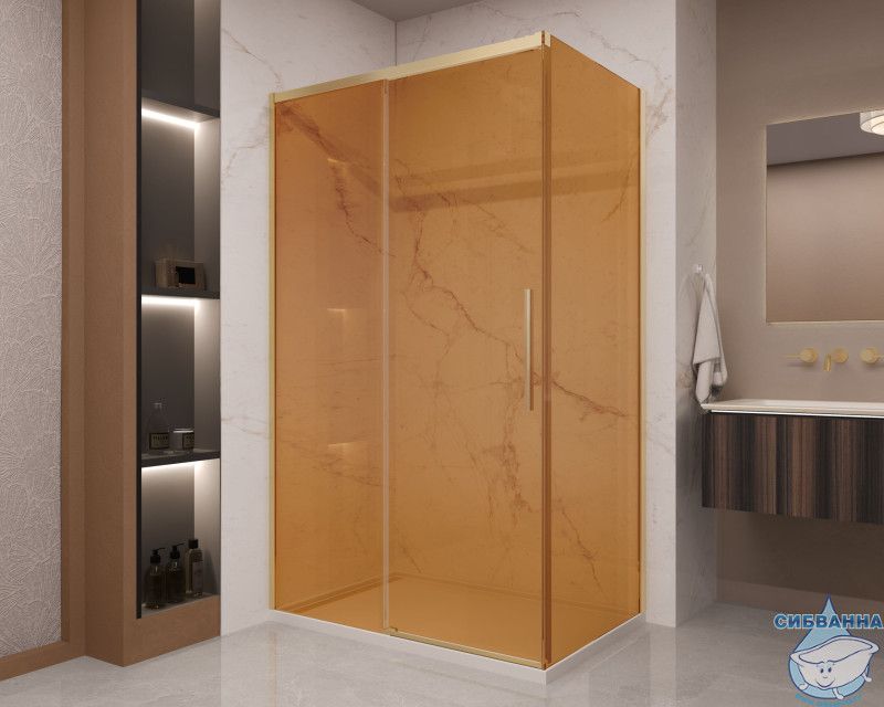 Душевое ограждение Vincea Stella 120x90 профиль брашированное золото, стекло янтарь VSR-1ST9012GSG