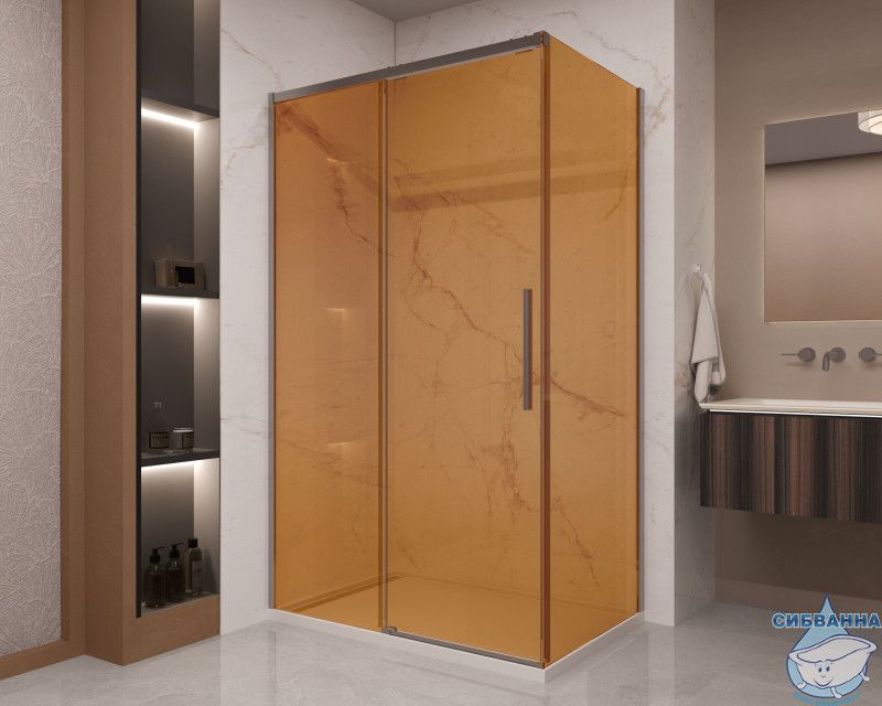 Душевое ограждение Vincea Stella 120x90 профиль вороненая сталь, стекло янтарь VSR-1ST9012GSGM