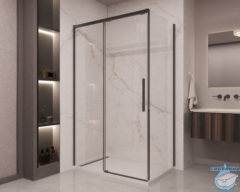 Душевое ограждение Vincea Stella 150x80 профиль черный, стекло прозрачное VSR-1ST8015CLB