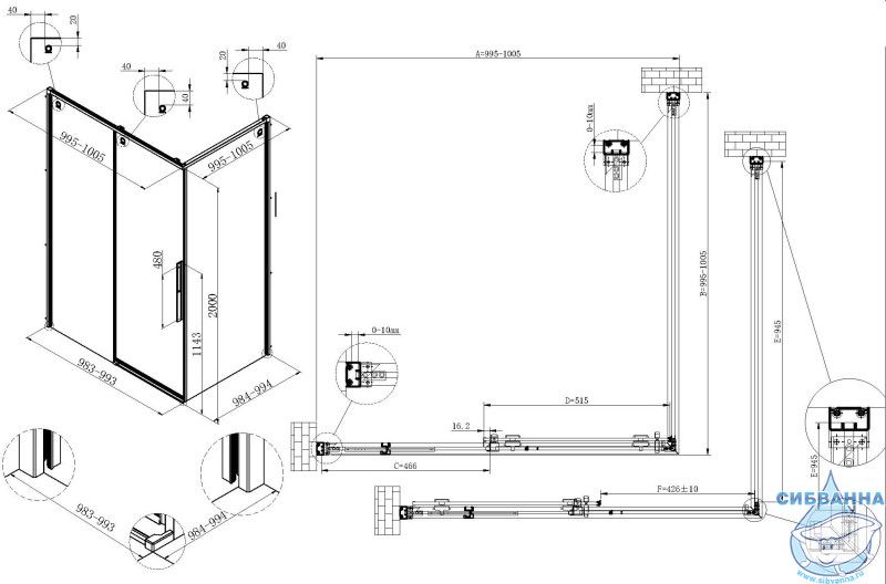 Душевое ограждение Vincea Ultima 100x100 профиль вороненая сталь, стекло прозрачное VSR-7UL1010CLGM