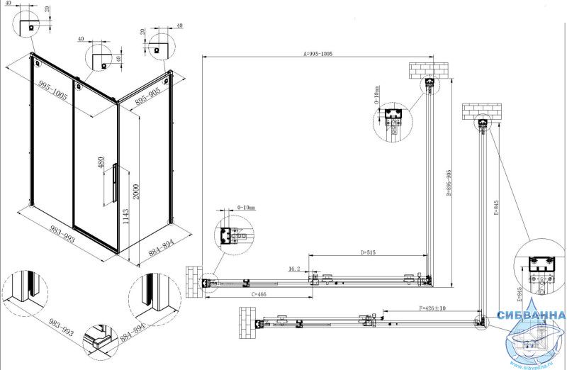 Душевое ограждение Vincea Ultima 100x90 профиль вороненая сталь, стекло прозрачное VSR-7UL9010CLGM