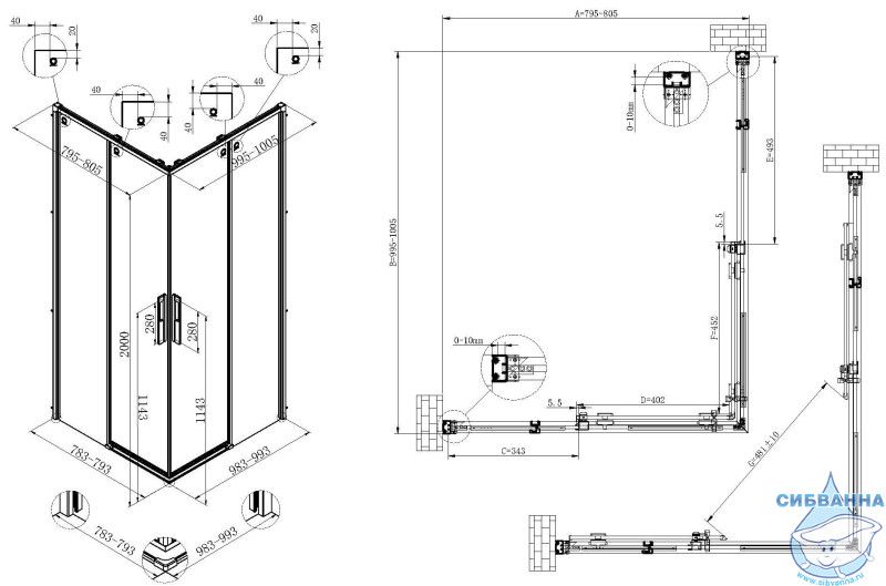 Душевое ограждение Vincea Ultima 80x100 профиль хром, стекло прозрачное VSS-7UL8010CL