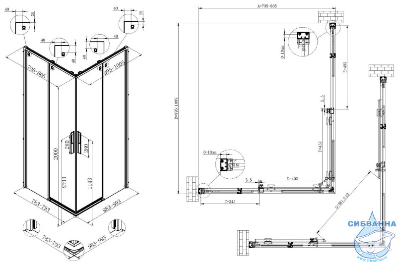 Душевое ограждение Vincea Ultima 80x100 профиль вороненая сталь, стекло прозрачное VSS-7UL8010CLGM