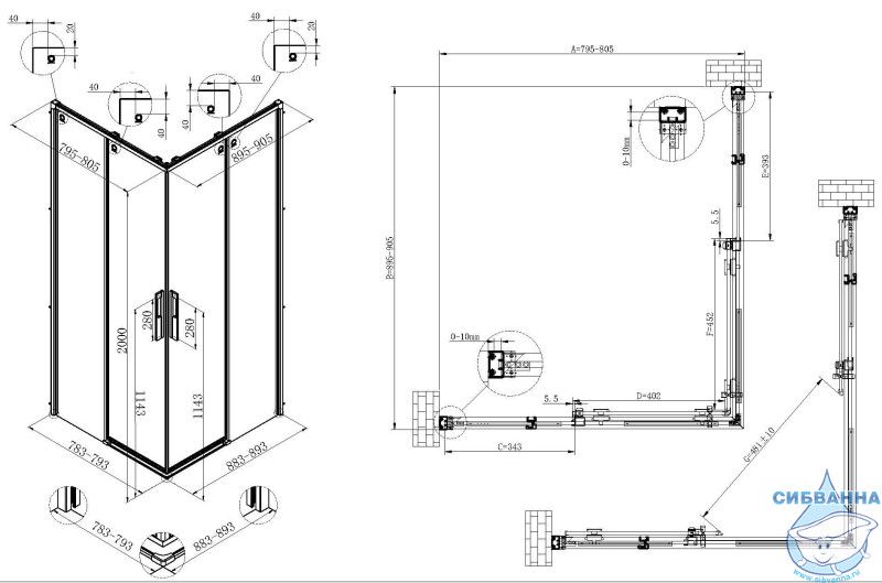 • Душевые ограждения