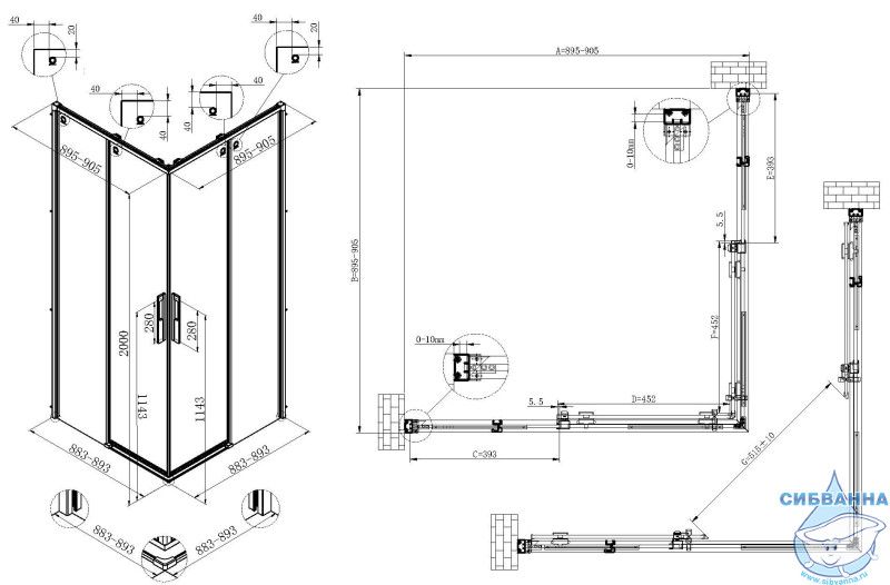 • Душевые ограждения