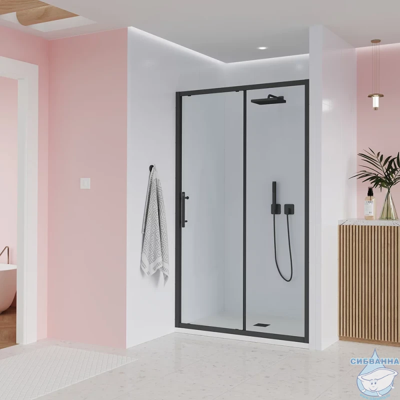 Дверь в нишу Veconi Эво 110 профиль черный, стекло прозрачное E1-B-110-01-C9