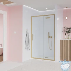 Дверь в нишу Veconi Эво 140 профиль брашированное золото, стекло прозрачное E1-G-140-01-C9