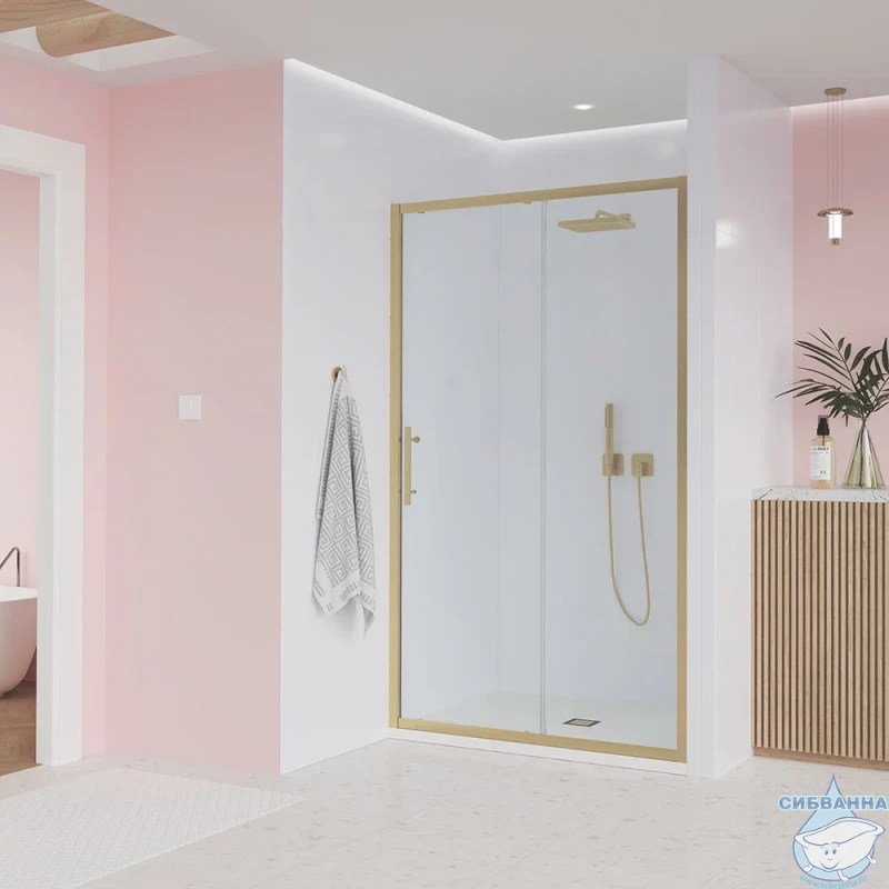 Дверь в нишу Veconi Эво 180 профиль брашированное золото, стекло прозрачное E1-G-180-01-C9