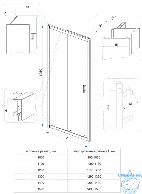 Душевая дверь раздвижная
