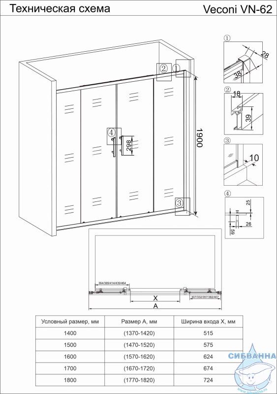 Душевая дверь раздвижная.