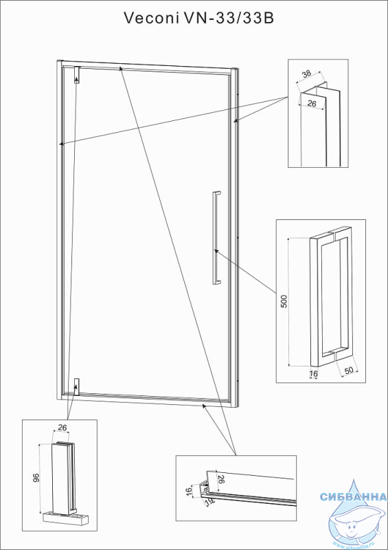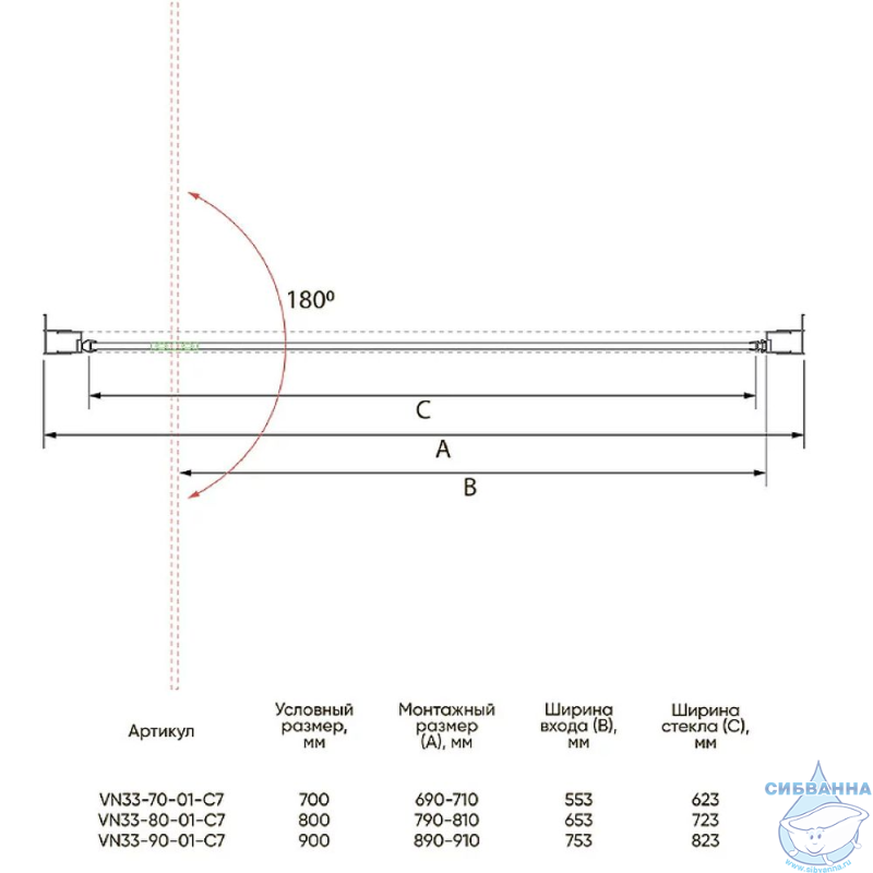 Душевая дверь распашная