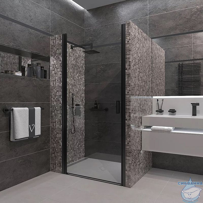 Дверь в нишу Veconi Vianno 90 профиль черный, стекло прозрачное VN43B-90-01-C5
