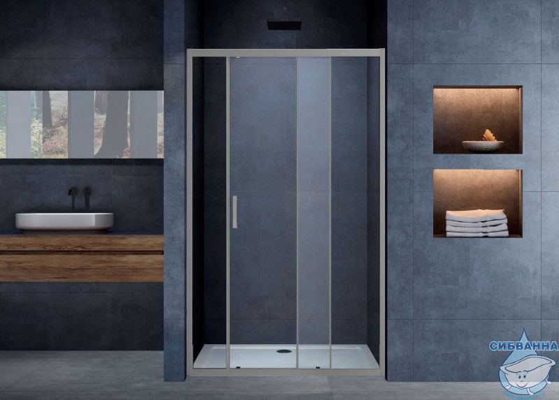 Дверь в нишу Vincea Alpha 120 профиль вороненая сталь, стекло прозрачное VDS-3AL120CLGM