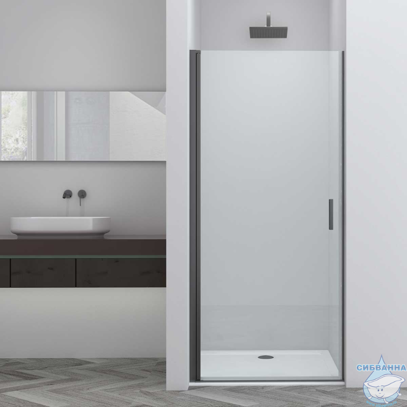 Дверь в нишу Vincea Alpha 80 профиль вороненая сталь, стекло прозрачное VDP-3AL800CLGM