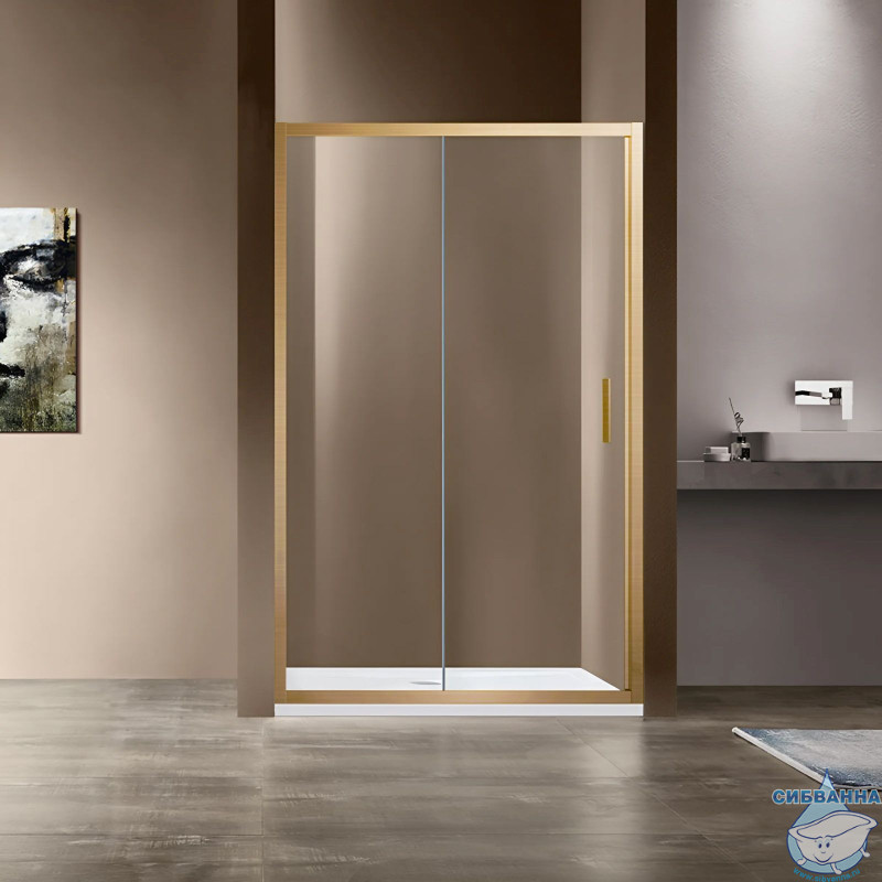Дверь в нишу Vincea Garda 130 профиль брашированное золото, стекло прозрачное VDS-1G130CLG