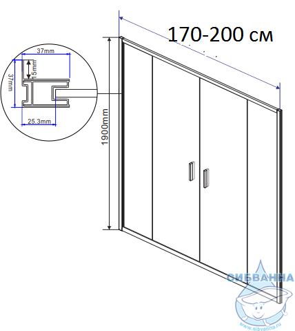 Серия: Garda. Материал: алюминий. Высота, мм: 1900. Толщина стекла: 6мм. Кол-во дверей: 2. Конструкция открывания дверей: раздвижная.