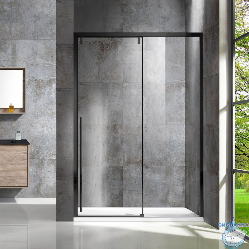 Дверь в нишу Vincea Lugano 130 профиль черный, стекло прозрачное VDS-1L130CLB-1
