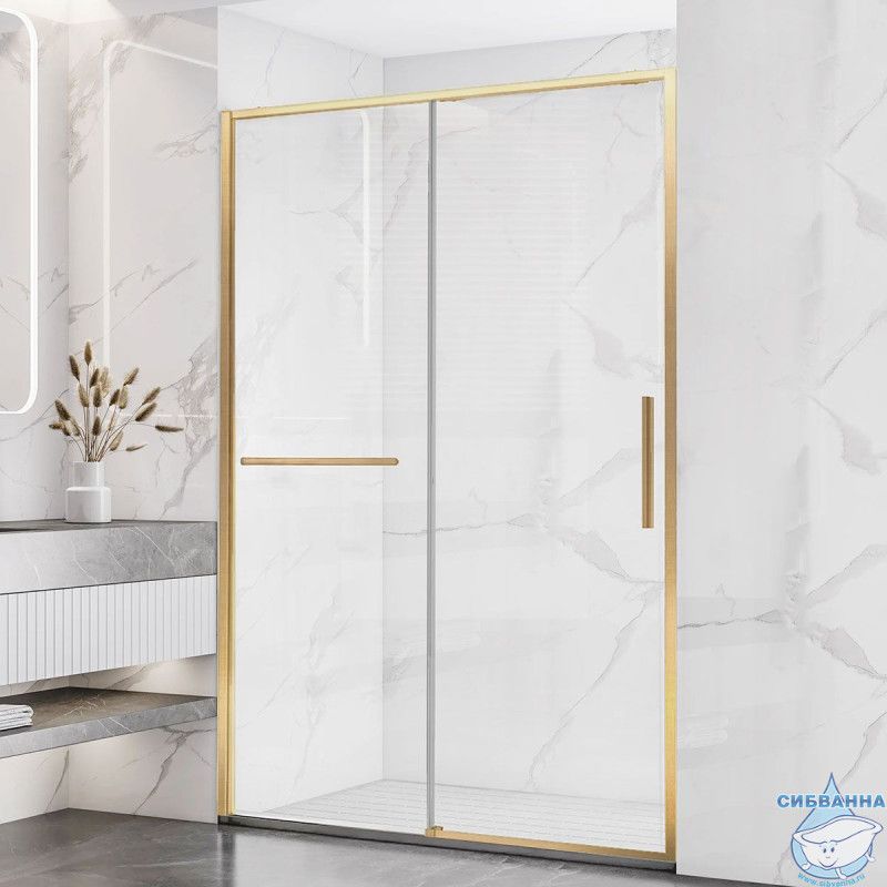 Дверь в нишу Vincea Slim Soft 120 профиль брашированное золото, стекло прозрачное VDS-1SS120CLG