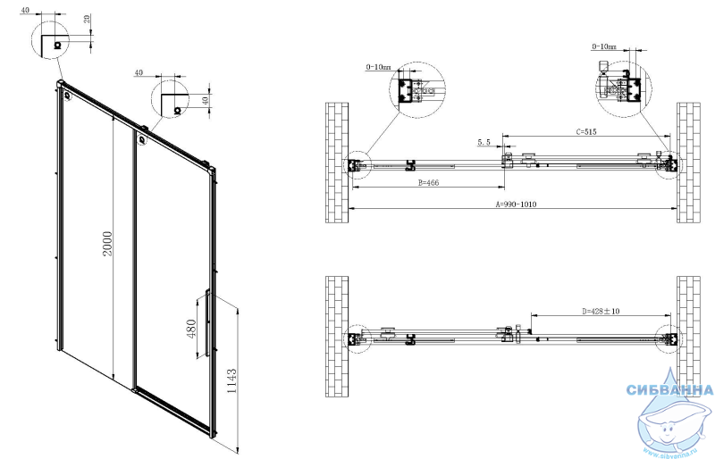 Дверь в нишу Vincea Ultima 140 профиль хром, стекло прозрачное VDS-7UL140CL