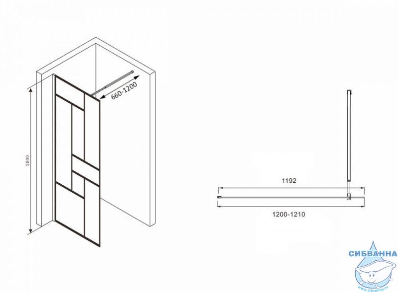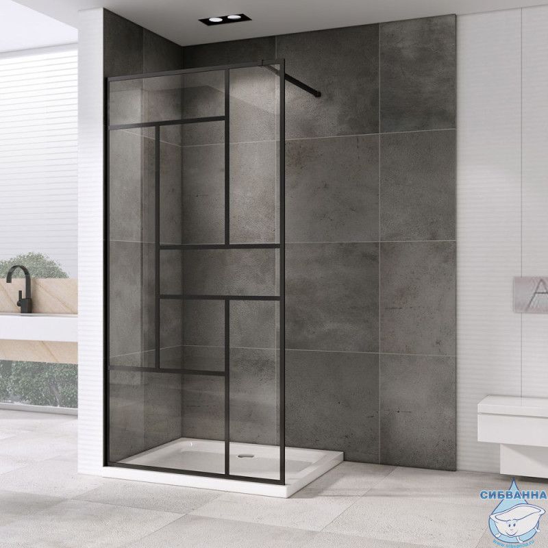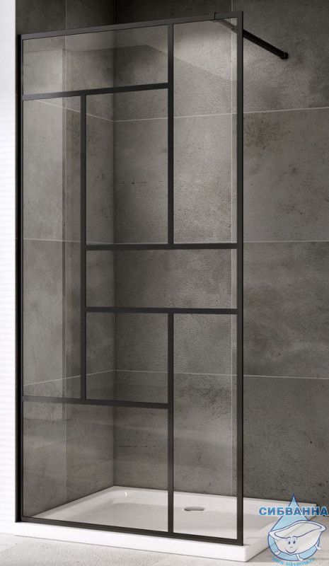 Душевая перегородка Стекло: закаленое прозрачное 6 мм Профиль: черный Особенности: • латунный кронштейн • универсальный монтаж • поддон приобретается отдельно