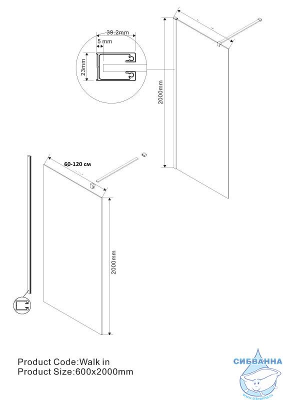 Материал: алюминий. Высота, мм: 2000. Толщина стекла: 8мм. Максимальная длина держателя кронштейна – 1200мм.
