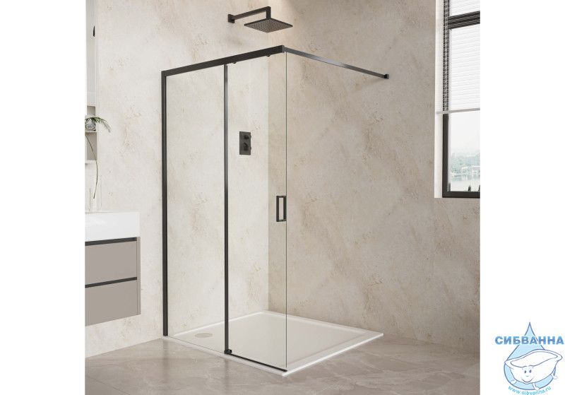 Walk in Aquatek 120х200 AQ.WISL.120.1BL профиль черный , стекло прозрачное