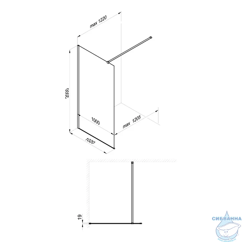 Walk-in Тритон Плано 100 профиль хром, стекло прозрачное Щ0000072402