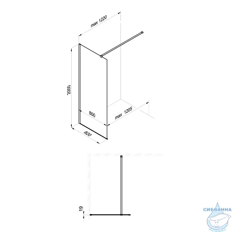 Walk-in Тритон Плано 80 профиль хром, стекло прозрачное Щ0000072403