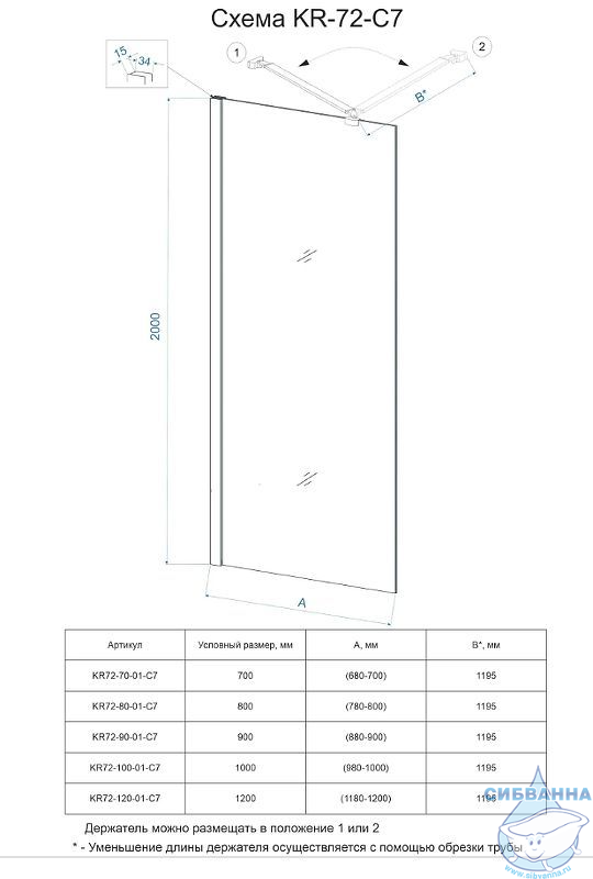 В комплекте поставки: душевая перегородка (профиль, стекло, фурнитура).