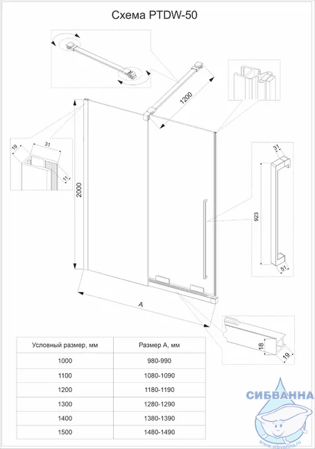 Walk-in Veconi Premium Trento 130 профиль хром, стекло прозрачное PTDW-50CH-130-01-C4