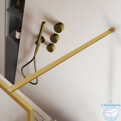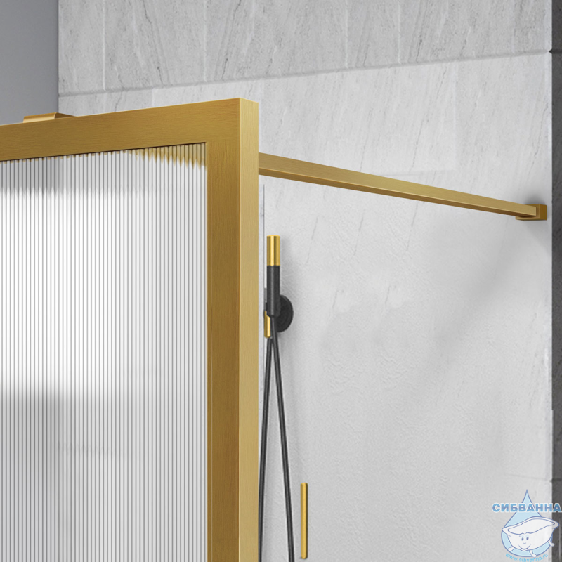 Серия:Walk-In. Материал: алюминий. Высота, мм: 2000. Цвет: брашированное золото. Толщина стекла: 8мм. Тип стекла: рифленое. Обработка стекла: Easy Clean. Максимальная длина держателя кронштейна – 1200мм.