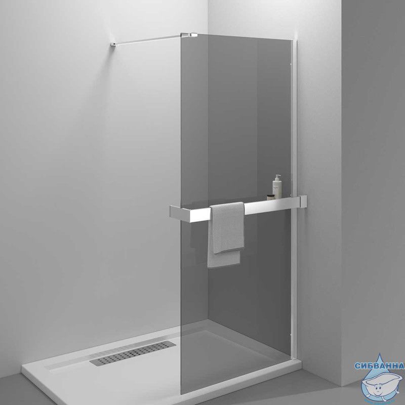 Серия: Walk-In Материал: алюминий Высота, мм: 2000 Толщина стекла: 8мм Тип стекла: прозрачное Обработка стекла: Easy Clean Держатель для полотенец и полка из нержавеющей стали в комплекте Универсальная установка – право/лево Максимальная длина держателя кронштейна – 1200мм