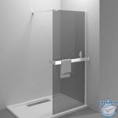 Серия: Walk-In Материал: алюминий Высота, мм: 2000 Толщина стекла: 8мм Тип стекла: прозрачное Обработка стекла: Easy Clean Держатель для полотенец и полка из нержавеющей стали в комплекте Универсальная установка – право/лево Максимальная длина держателя кронштейна – 1200мм