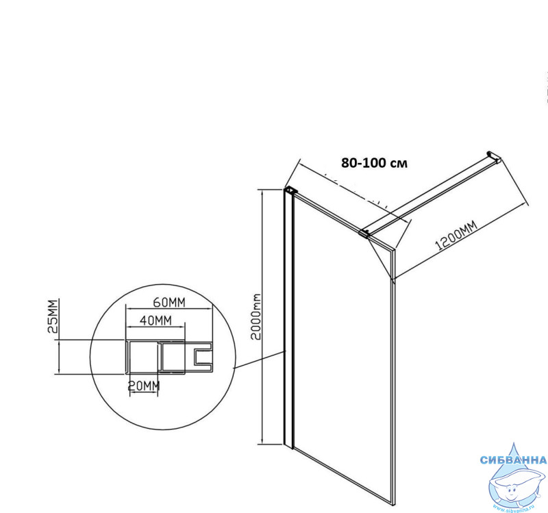 Серия: Walk-In Размер: 800×2000 Материал: алюминий Высота, мм: 2000 Цвет: хром Толщина стекла: 8мм Обработка стекла: Easy Clean Тип стекла: прозрачное Регулировочные размеры: 780-800 Максимальная длина держателя кронштейна – 1200мм