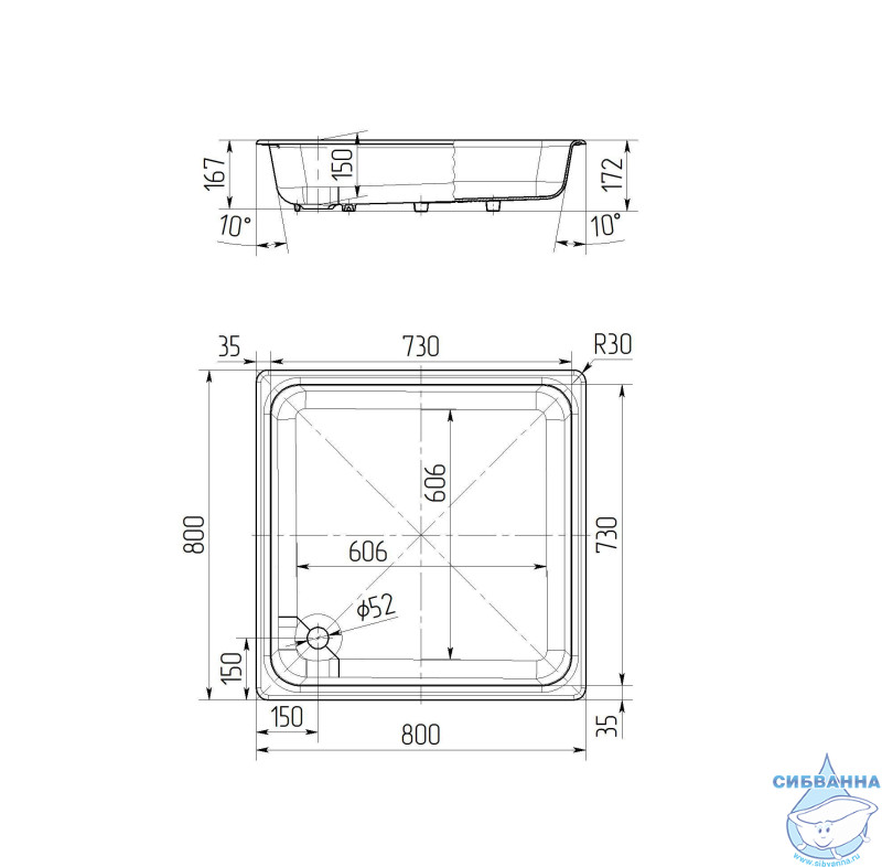 Чугунный поддон быстро прогревается, долго сохраняет тепло за счет толщины стенки. Эмалевое покрытие поддона не впитывает грязь, легко моется, имеет высокую гигиеничность и длительный срок службы.