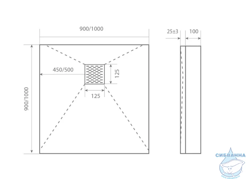 • Форма поддона квадратная