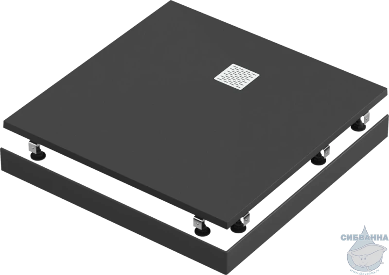 Душевой поддон Высота на ножках 13см Высота без ножек 3.5см Поверхность: антибактериальная противоскользящая Сливная решетка: нержавеющая сталь Форма: квадрат Материал: литьевой мрамор