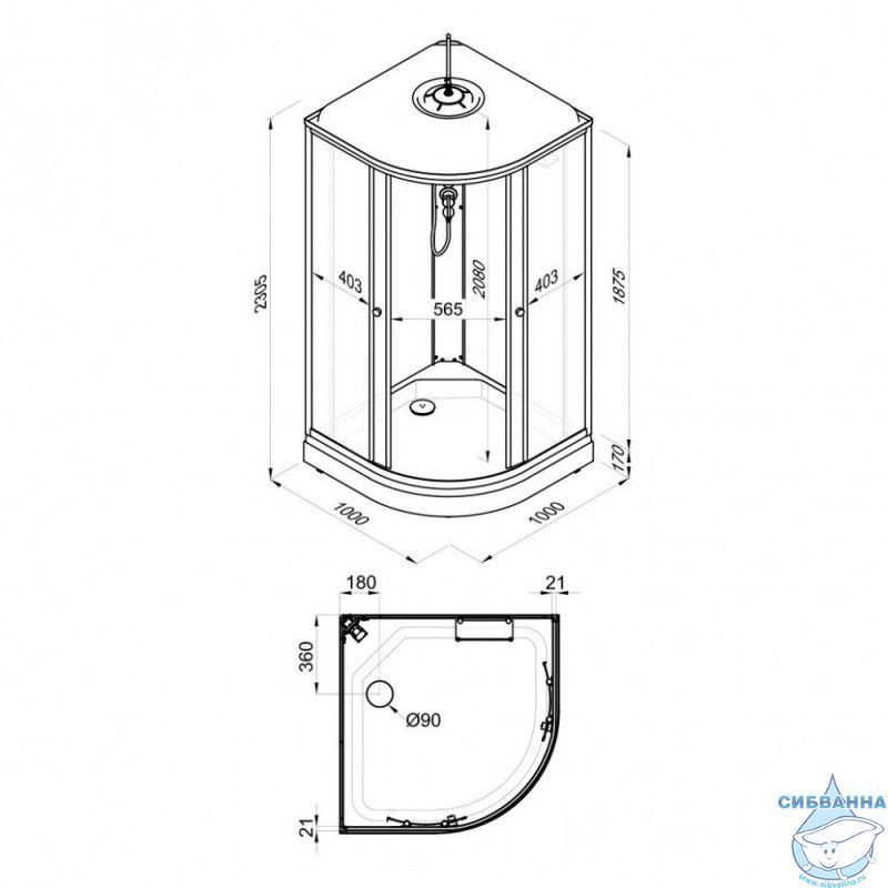 Длина: 1000 мм Ширина: 1000 мм Высота: 2280 мм.