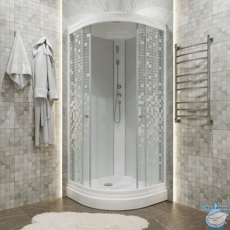 ДК Стандарт 100*100 А 1/4 круга, низ. подд., Аква, Мозаика, Белый, ДН4 (7 мест+сифон D90мм)