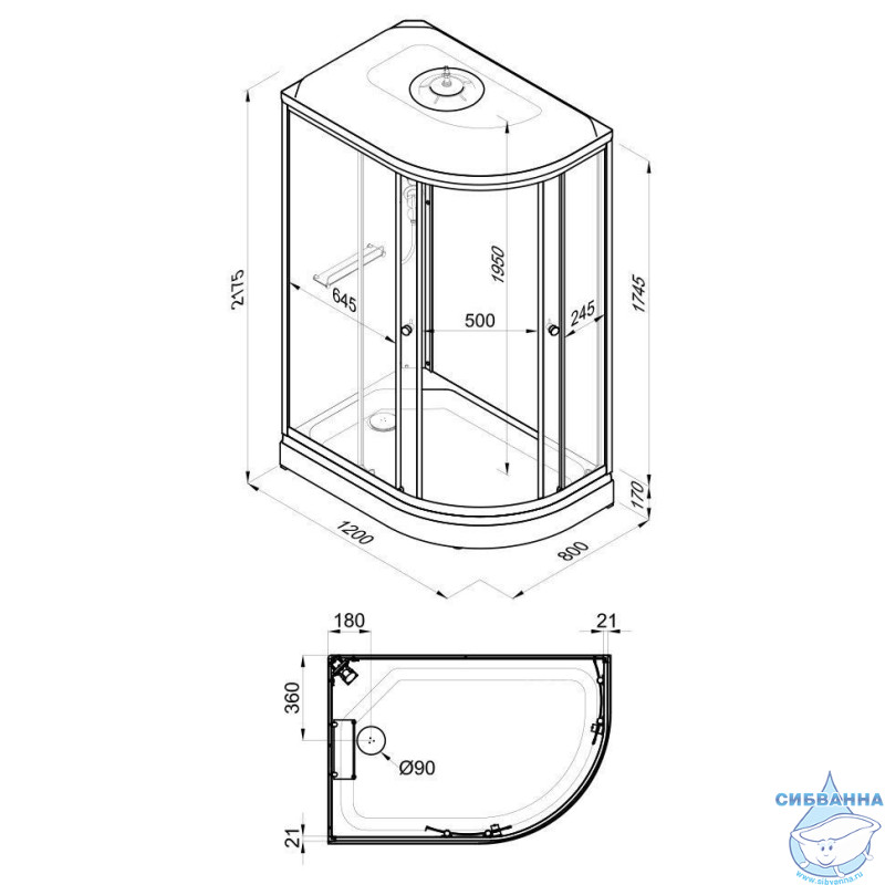 • Форма поддона асимметричная