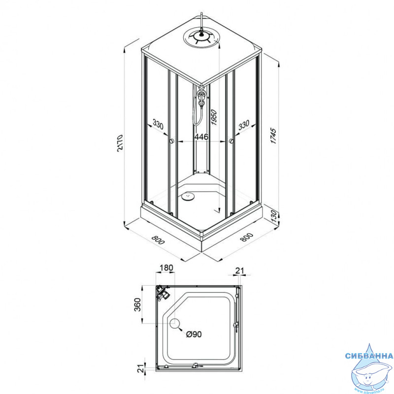 • Размер кабины 80x80