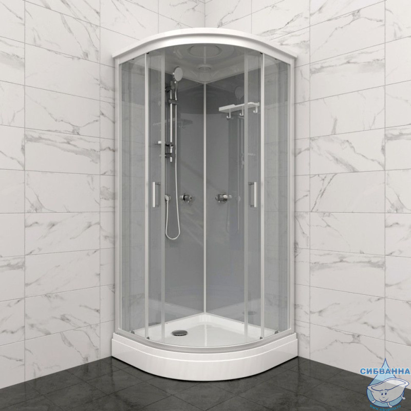Состав поставки : Комплект передних стёкол. Комплект задних стёкол. Комплект направляющих. Поддон душевой со съёмным экраном. Каркас для поддона стальной. Крыша. Смеситель с лейкой и тропическим дождем. Сифон (без гофры).