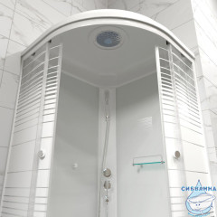 В комплект входит: Поддон душевой со съемным экраном,Каркас для поддона стальной,Передние стекла,Передние двери,Комплект направляющих,Задние стенки,Центральная душевая панель,Крыша,Смеситель с лейкой и тропическим душем,Сифон,Сборочный комплект.
